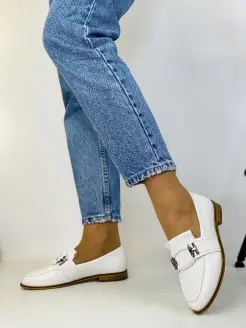 Лоферы кожаные мокасины плоская подошва низкий каблук