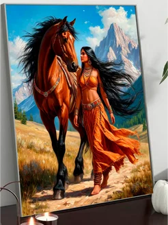 Картина на стену для интерьера "Девушка с конем" 40х50 см