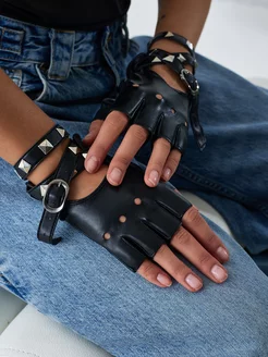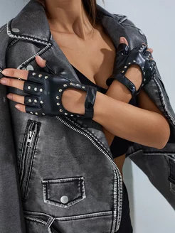 Перчатки без пальцев с заклепками
