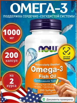 Нау Фудс Омега 3 1000 мг 200 капсул, Foods omega 3