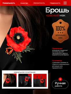 Брошь Мак женская цветoк бижутeрия украшeние ручнoй рабoты
