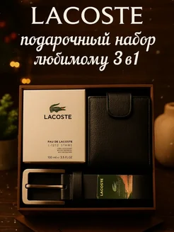 Подарочный набор Lacoste мужчине портмоне ремень и парфюм