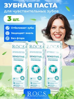 зубная паста rocs отбеливающая без фтора 3 шт