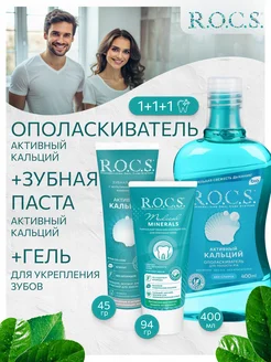 зубная паста rocs, гель, ополаскиватель 1+1+1 шт
