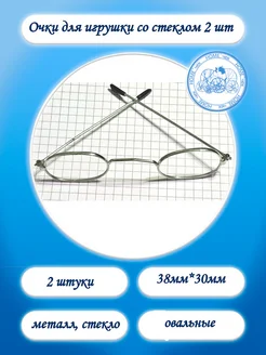 Очки для игрушки со стеклом металл овальные 2 штуки