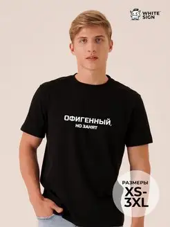 Футболка мужская черная хлопок с принтом офигенный но занят