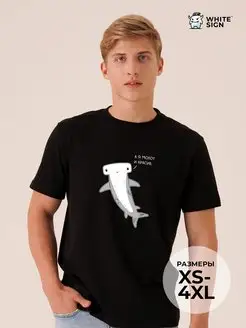 Футболка мужская черная оверсайз хлопок принт акула-молот