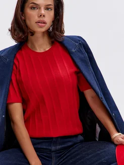Кофта летняя вязаная трикотажная в однотонную полоску