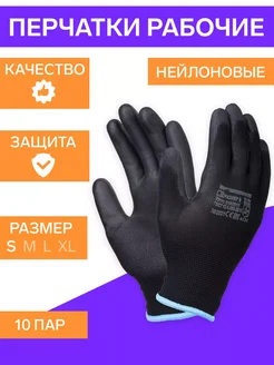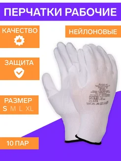 10 пар Перчатки рабочие строительные нейлоновые с обливом
