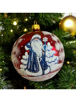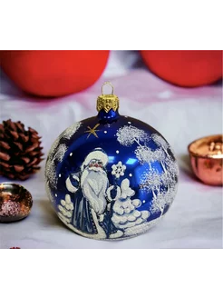 Новогодний шар украшение стекло большой 95 мм дед мороз