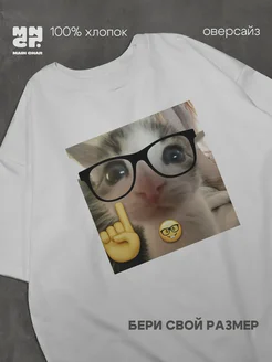 Футболка оверсайз с принтом «Кот мем» удлиненная