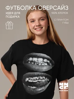 Футболка оверсайз с принтом губы удлиненная хлопок