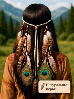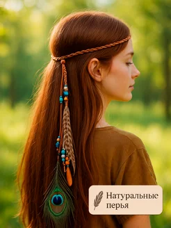 Украшение для Волос Тика Этно "Павлинье Перо" Бохо