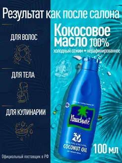 Кокосовое масло пищевое для волос, тела и загара 100 мл