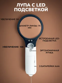 Лупа с подсветкой для чтения ручная
