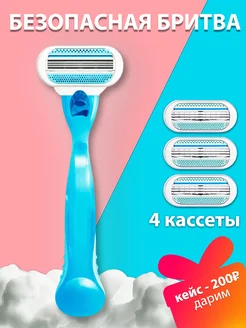 Бритва женская многоразовая, станок для бритья с 4 кассетами