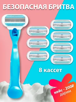 Бритва женская многоразовая, станок для бритья с 8 кассетами