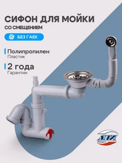 Сифон для мойки 3 1 2"* 40 смещенный, отвод для СМ