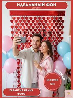 Занавес Дождик для праздника 100х200 см Красные сердца
