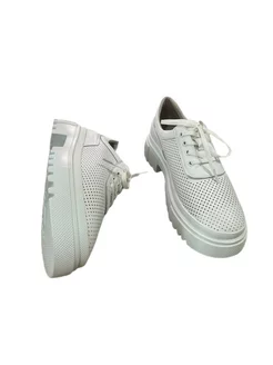 Туфли женские полуботинки белые на шнурках с перфорацией