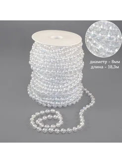 Бусы на нитях для декора 8мм 18,3м прозрачный