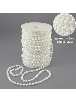Бусы на нитях для декора 6мм 30м белый