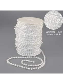 Бусы на нитях для декора 6мм 27,5м прозрачный