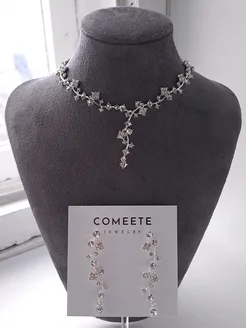 Колье и серьги комплект свадебный, бижутерия набор вечерний