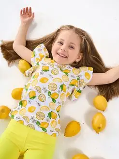 Футболка нарядная яркая с крылышками с лимонами