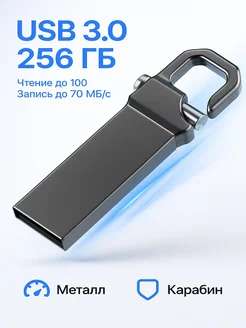 USB флешка 256 ГБ, USB 3.0, металлический карабин