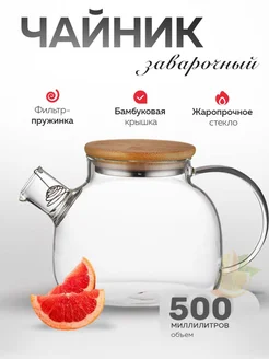Чайник заварочный стеклянный с бамбуковой крышкой 500 мл