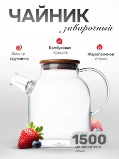 Чайник заварочный стеклянный с бамбуковой крышкой 1500 мл