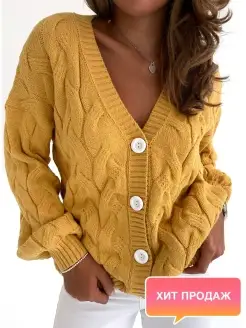 Кардиган женский оверсайз вязаный с карманами