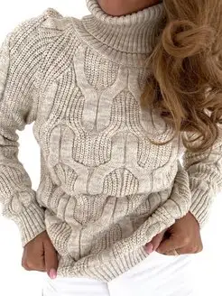 Свитер женский с горлом вязаный оверсайз теплый