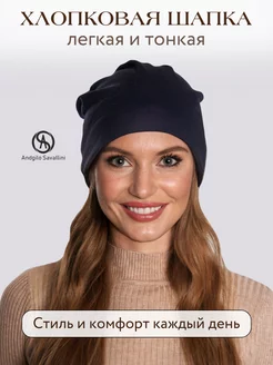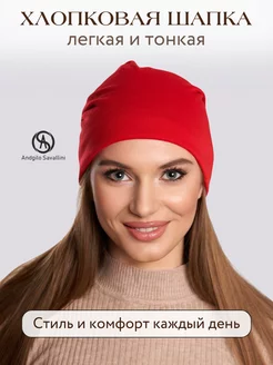 Тонкая хлопковая шапка бини осенняя демисезонная