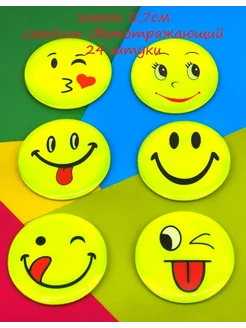 Значок смайлик светоотражающий 5 7 см 24 штуки