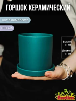Горшок керамический темно - бирюзовый D11, V1л (с поддоном)