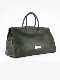 Большая дорожная зеленая сумка саквояж с плечевым ремнем