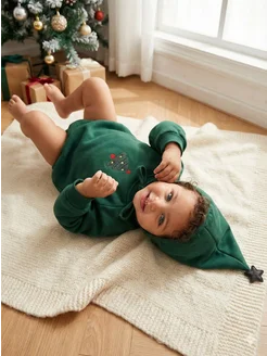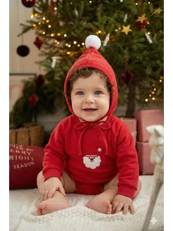 Боди толстовка оверсайз с начесом новогодний с шапкой