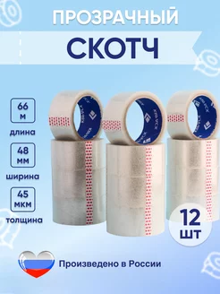 Прозрачный скотч 66 м 45 мкм 12 шт