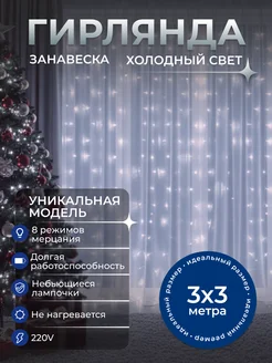 Светодиодная новогодняя гирлянда 3х3 с пультом белый свет