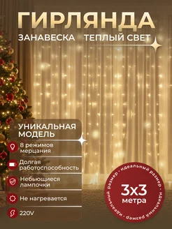 Новогодняя гирлянда 3х3 для окон и стен желтый свет