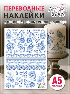 Наклейки переводные для свечей и декора Гжель