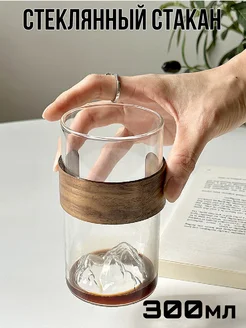 Стакан 300мл с ободком из бамбука и фигурным дном горы