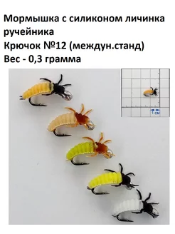 НАБОР 5 ШТУК Мормышка с силиконом Личинка ручейника кр.№12