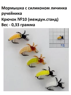 НАБОР 5 ШТУК Мормышка с силиконом Личинка ручейника кр.№10