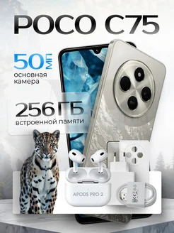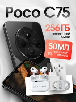 Смартфон Xiaomi C75 256 ГБ черный + AirPods Pro 2