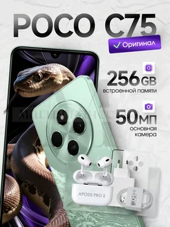 Смартфон Xiaomi C75 256 ГБ зеленый + AirPods Pro 2