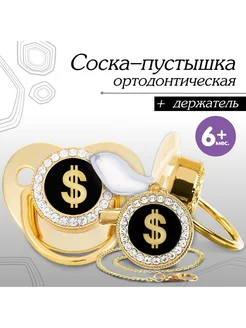 Набор соска - пустышка ортодонтическая с держателем Доллар