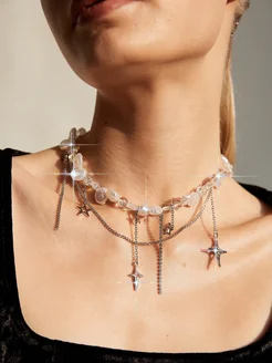 Подарочное многослойное Колье Чокер с камнями и звездами